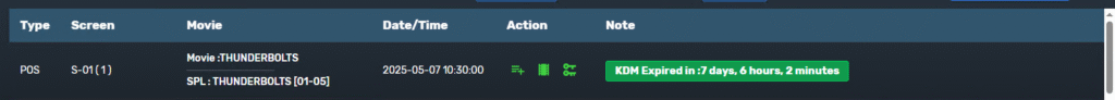 Note / KDM StatusShows KDM expiry time or any warnings for the session